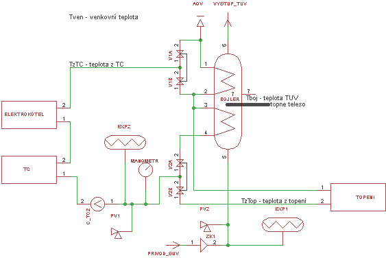 Teploty v systému jsou snímány pomocí čtyř teploměrů.