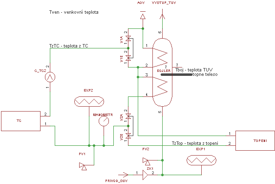 Teploty v systému jsou snímány pomocí čtyř teploměrů.