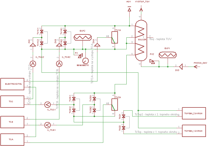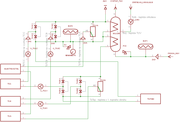 Teploty v systému jsou snímány pomocí devíti teploměry.